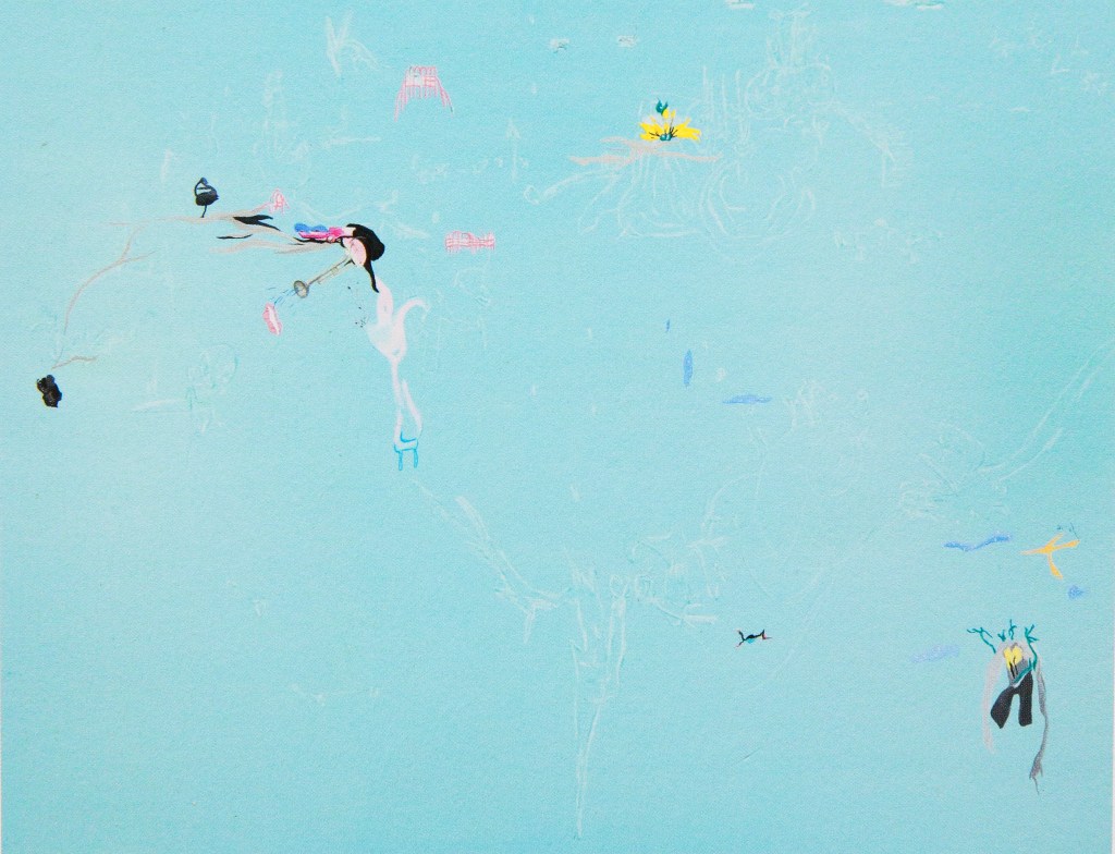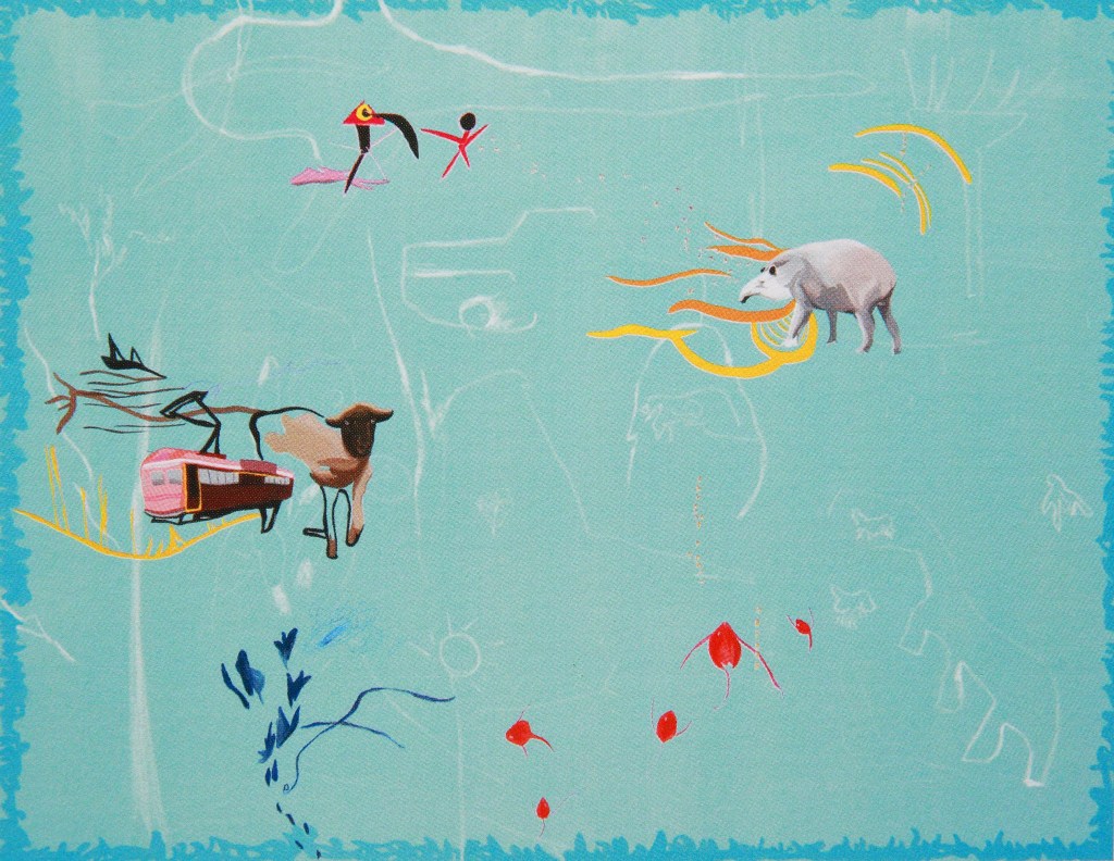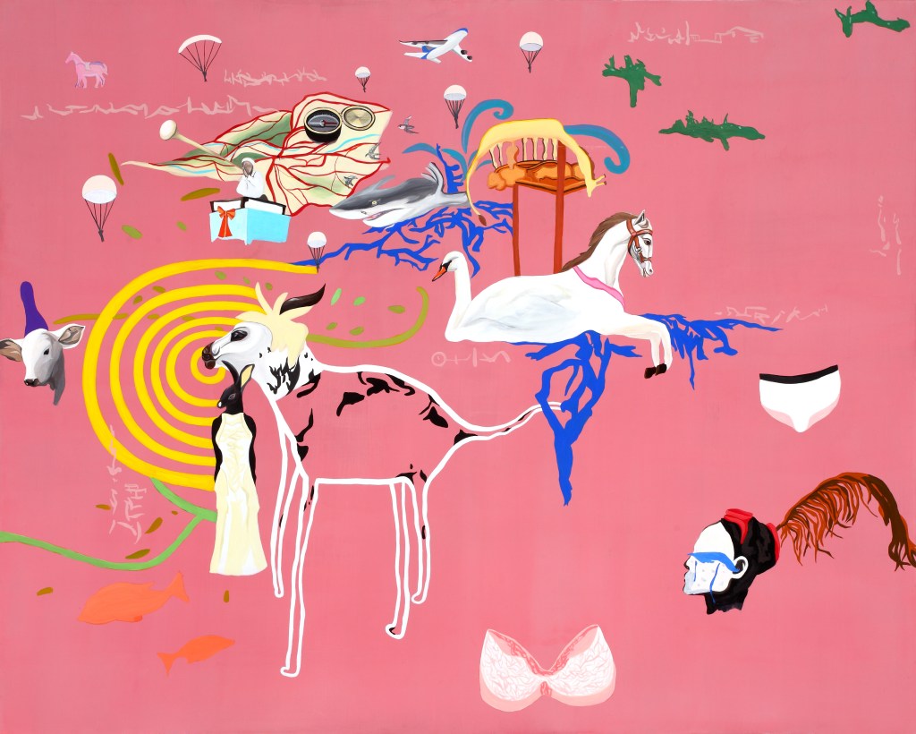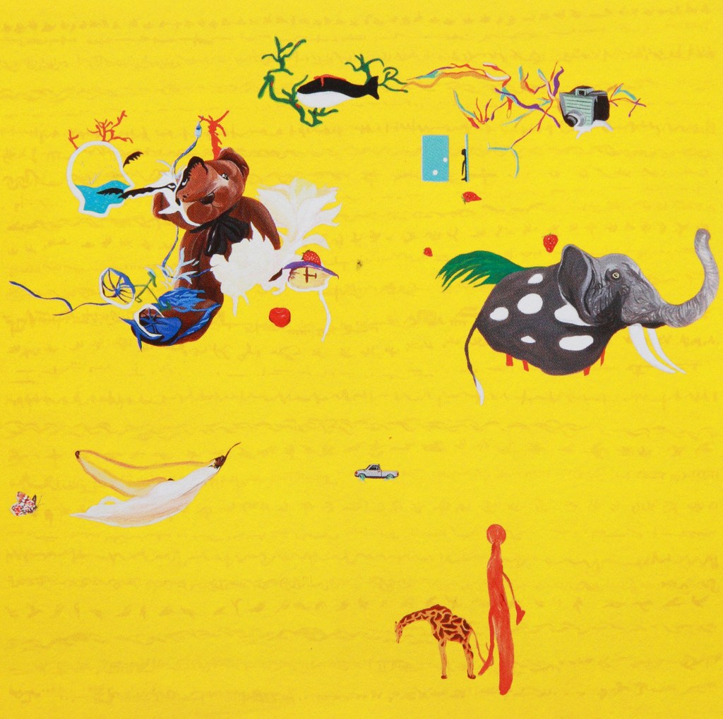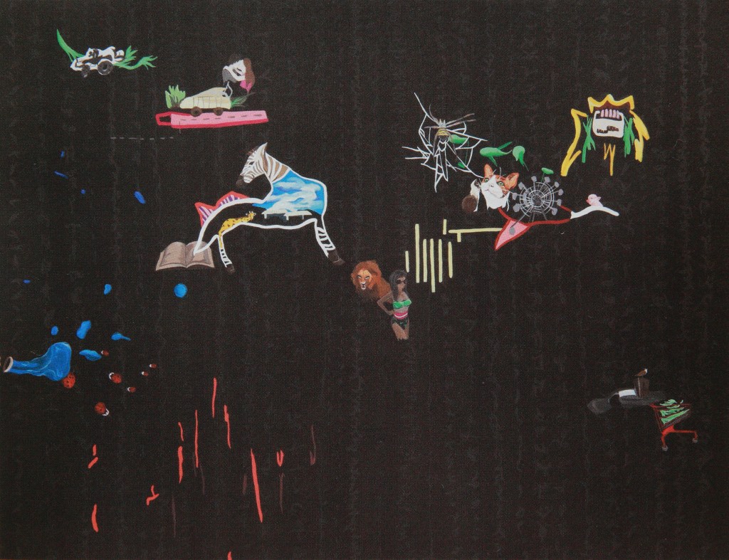 The sentiment of WaYou seems to be embodied from the moment that the viewer feels as if the background is a kind of emptiness, due to the seamless fusion between the hardly recognizable figures, shapes and characters. Choi may have prepared for the journey toward a certain type of free moments as soon as she began to fill the backgrounds with colors. The midget blackish shadow showing itself after slightly pushing aside the scene of sprightly, playful elephants and teddy bears seems to watch the images.