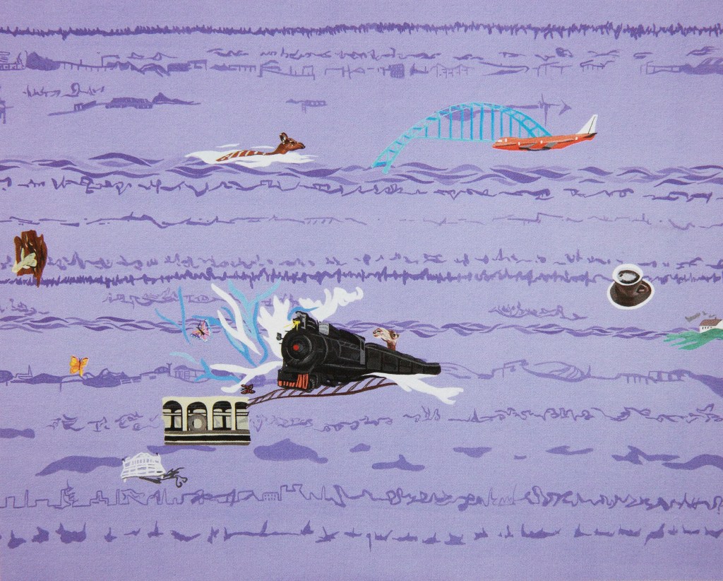 The depictions of bananas bigger than giraffes, a deer crossing the Han River, and cars running over the bridge represent Choi’s subjective images putting a little zest in our daily lives. Like puppies playing with a ball, the images show people laid back and relaxed by keeping distance from daily routines, instead of being restrained by them. In other words, they reveal a sentiment of being relaxed like that of WaYou (臥遊, sightseeing in reclining postures, metaphorically meaning basking in quality paintings by well-known artists at home).